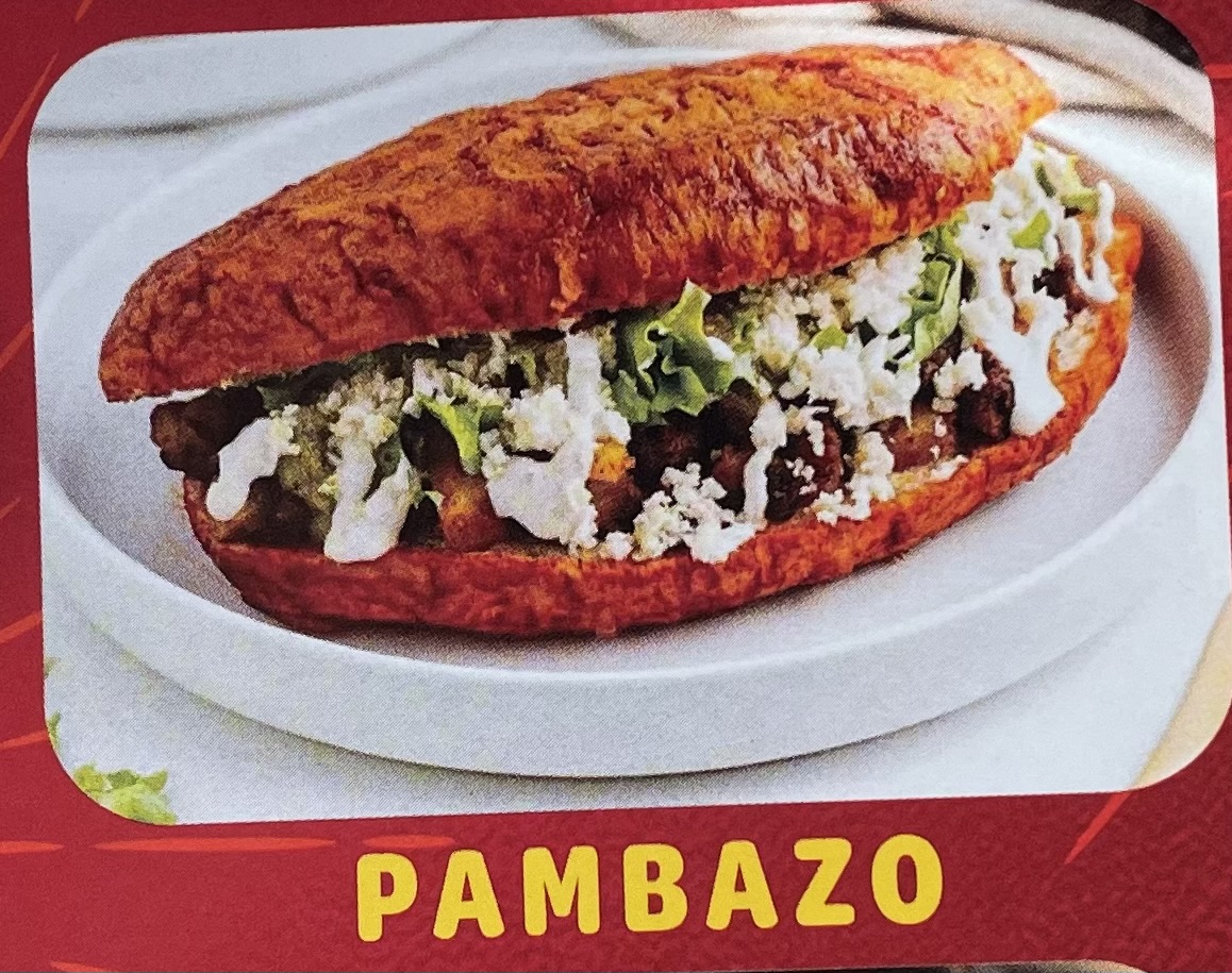 Con arroz y frijoles. / With rice and beans.